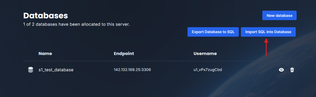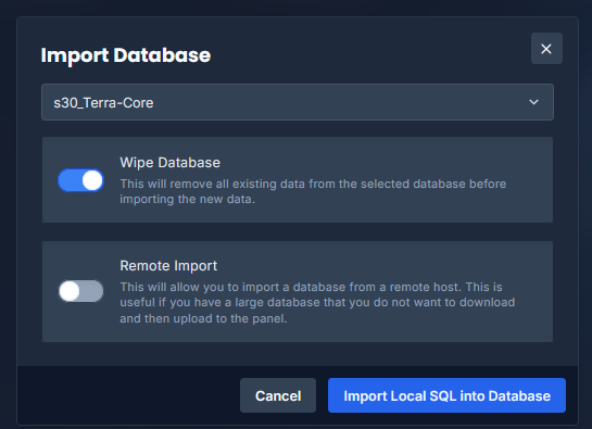 ⚠️ Note: Database imports are limited to 5 GB in size.